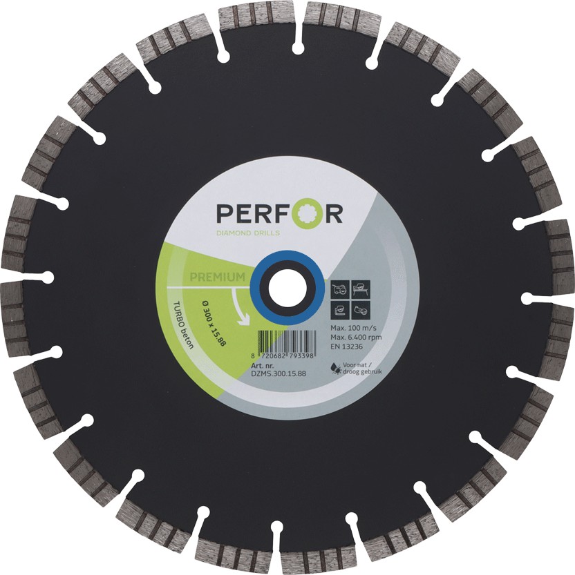 Het zaagblad heeft PERFOR in verschillende maten en is geschikt voor zowel de motorzaagmachine als een zaagtafel. Ook is het zaagblad ideaal voor droog en nat zagen in allerlei beton en (harde) steensoorten (kalkzandsteen, asfalt, (beton)bandjes).